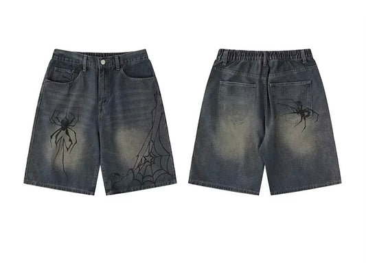 Spider Web Dark Jean Shorts
